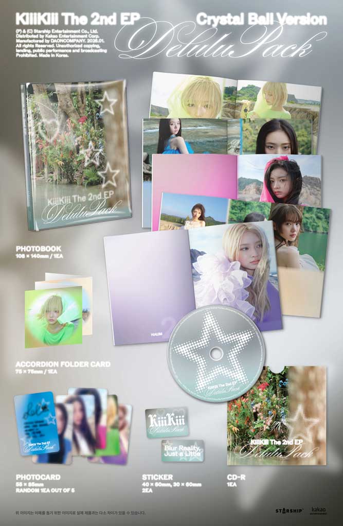 - HOME > 조은뮤직 > GIRL GROUP > [세트] KiiiKiii (키키) - The 2nd EP [Delulu Pack] (Calendar.+Crystal Ball.+Headphone. Version)