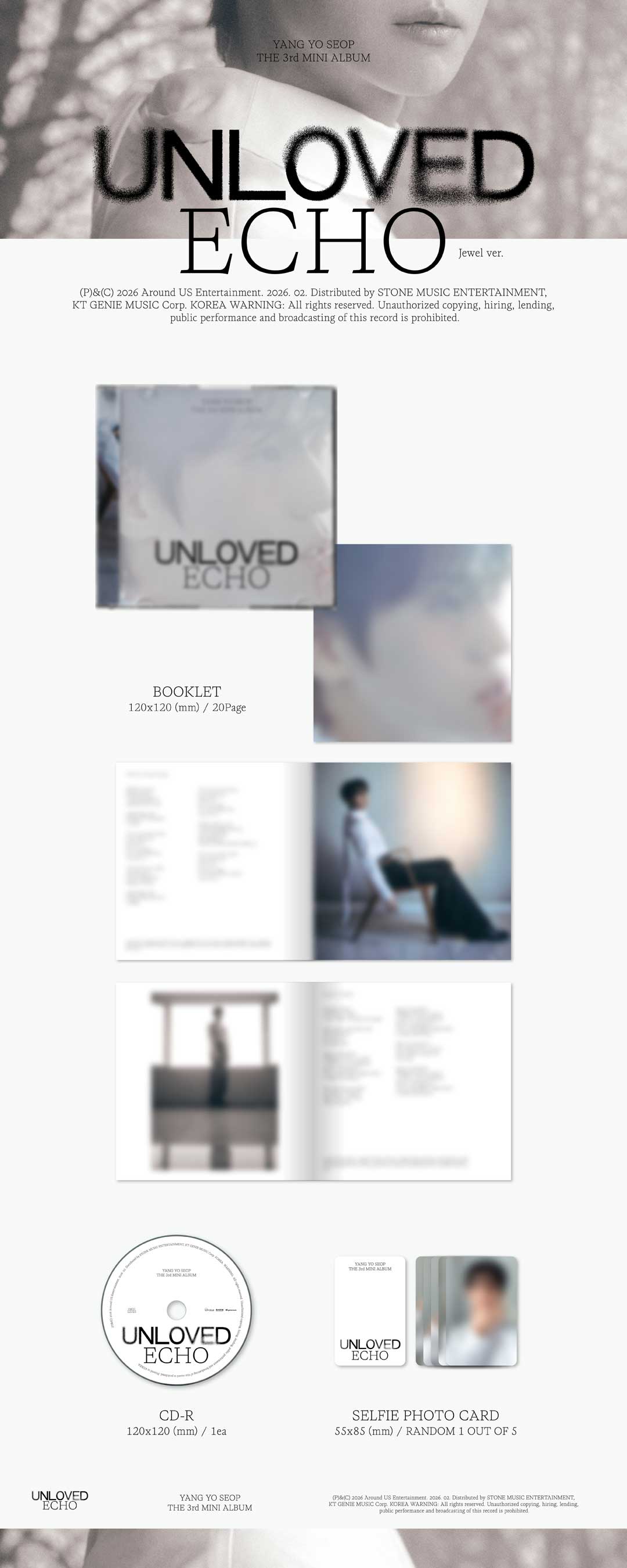 이번 앨범의 제목은 [Unloved Echo] 입니다. 사라진 사랑의 잔상, 메아리, 사랑이 끝나고 난 뒤에도 마음 속에 남아 계속 울리는 여운 같은 것을 의미합니다. 앨범에 수록된 총 여섯 곡에서 아마 각기 다른 사랑의 형태를 보실 수 있을 텐데요, 그 사랑들이 듣는 이의 마음에 또 각각 어떻게 남을지는 잘 모르겠습니다. 항상 그런 거 같아요. 모든 사람이 다 똑같은 곡을 (제일) 좋아하지는 않는 것처럼, 같은 곡을 들어도 또 마음에 남는 느낌은 다 다르더라고요. 궁금해요. 이번에 보내는 내 노래들은 어떤 모습으로 당신의 마음에 남을까요?